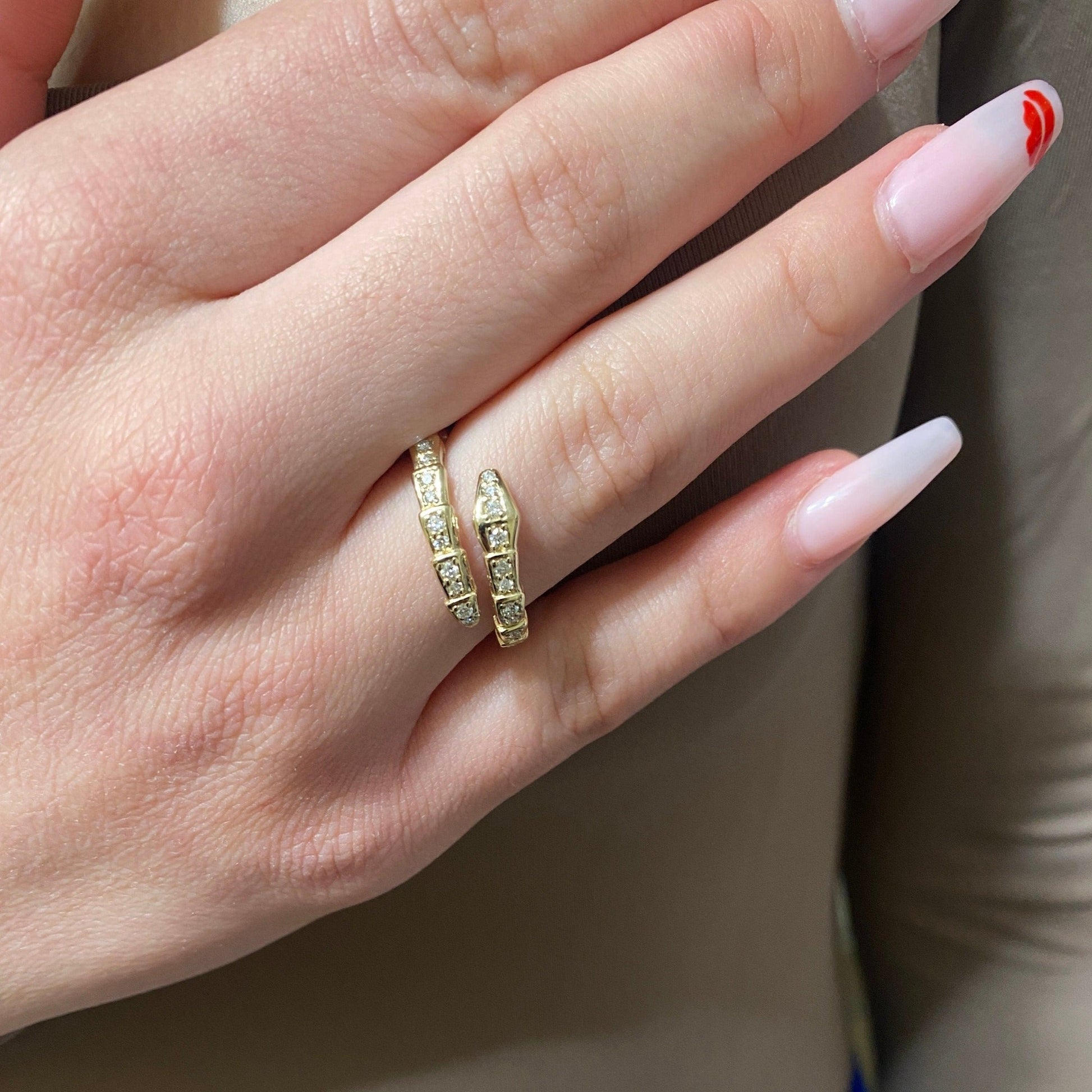 14K Diamond Solid Gold Serpent Eternity Diamond Ring / Snake Design Eternity Design with 40 REAL Diamonds / Diamond Ring / Gift for Her