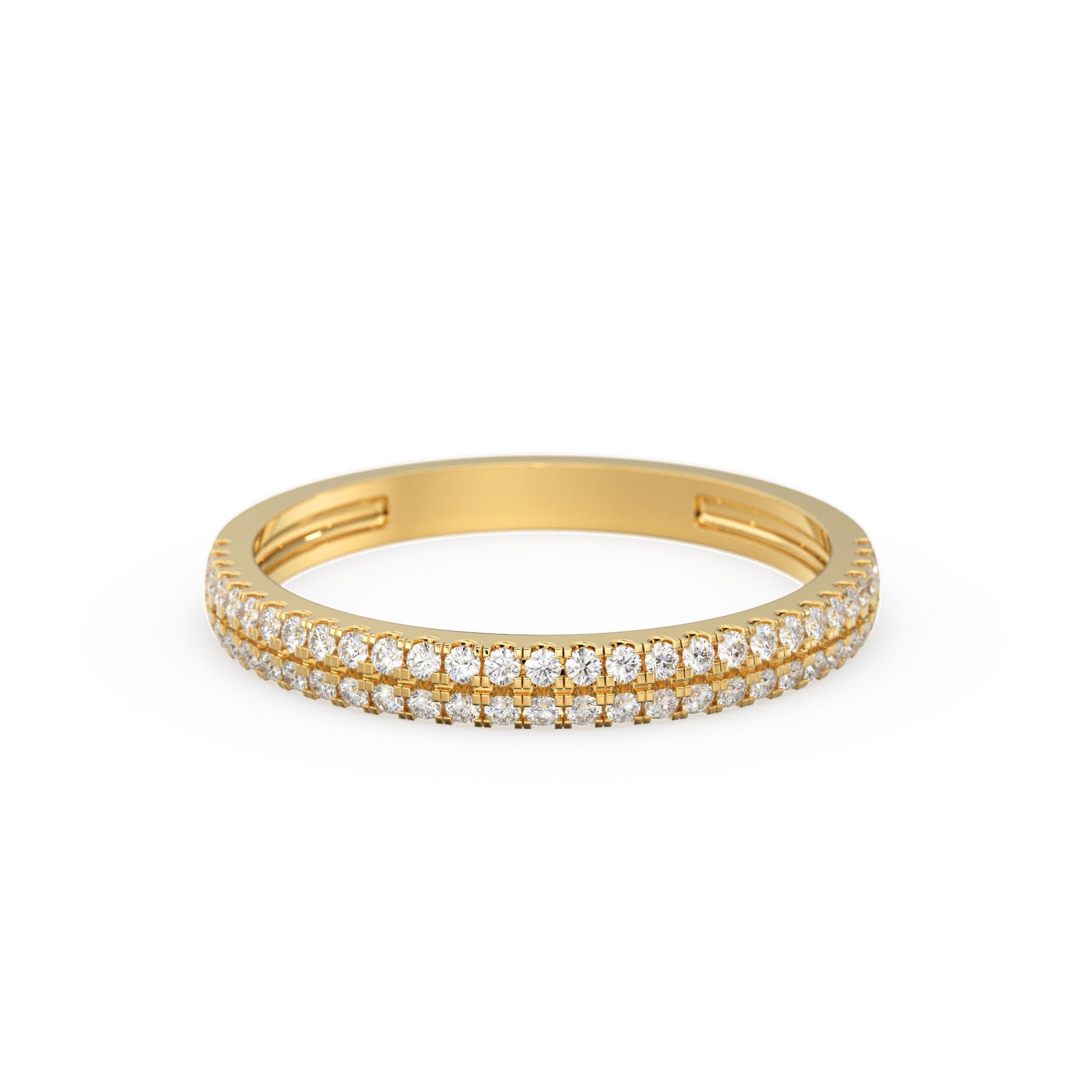 14K Solid Gold Half Eternity Diamond Wedding Ring Micro Pave 2 Row Band / Gift for Her