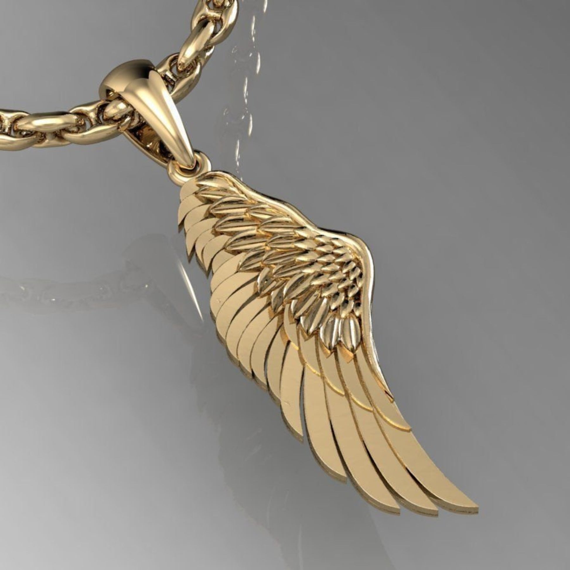 14K Solid Gold Angel Wing/ Minimalist Angel Gold Wing for Her