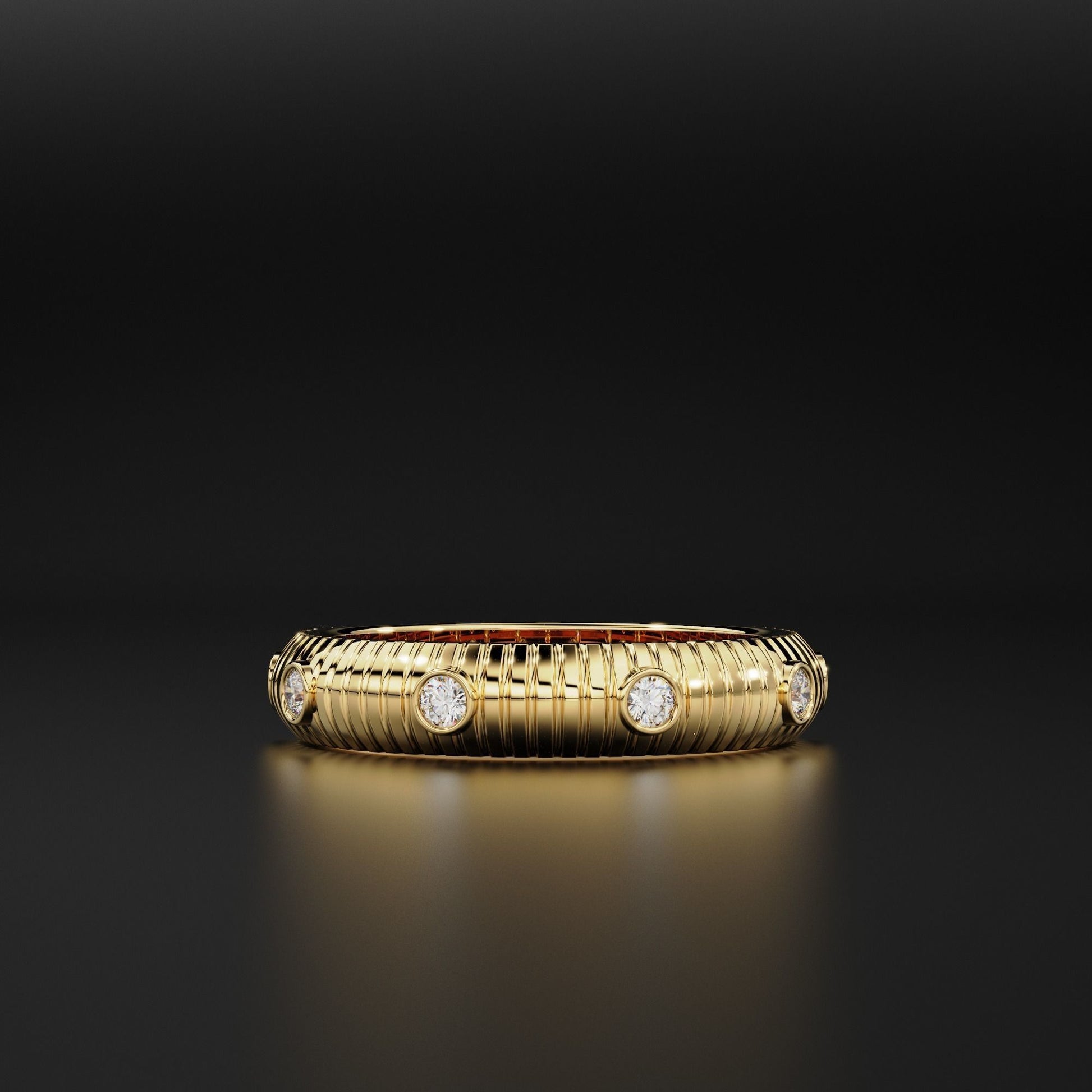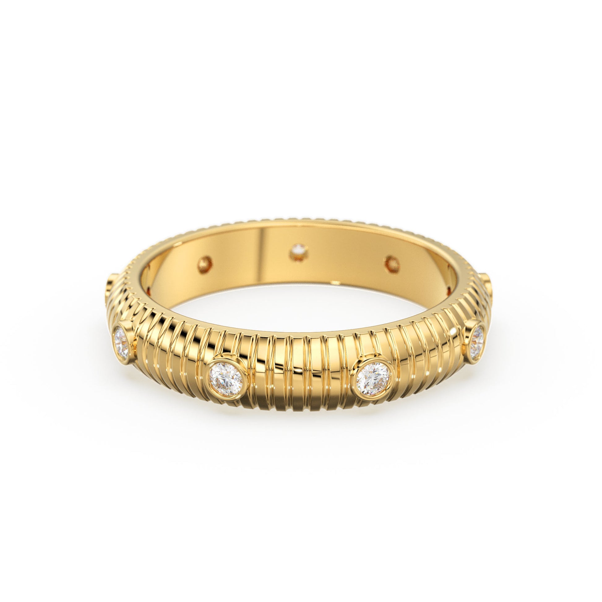 14K Solid Gold Bezel Set Diamond Engagement Ring Wedding Band Jewelry / Gift for Her