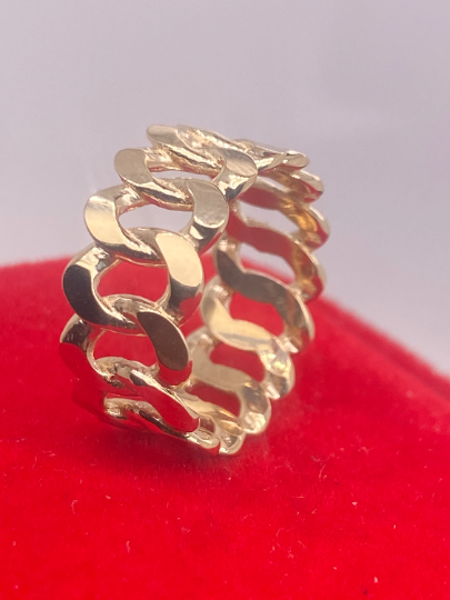 14K Solid Gold Chain Ring / Cuban Chain / Miami Curb Chain Ring / Cuban Link / Stackable Ring / Unisex 8mm Width