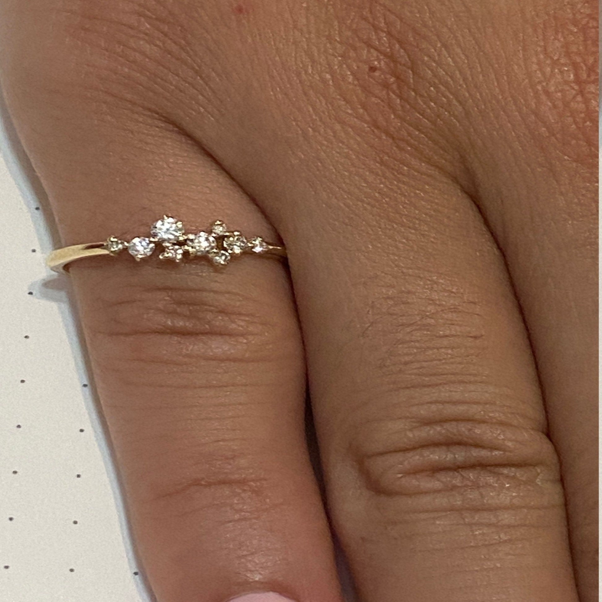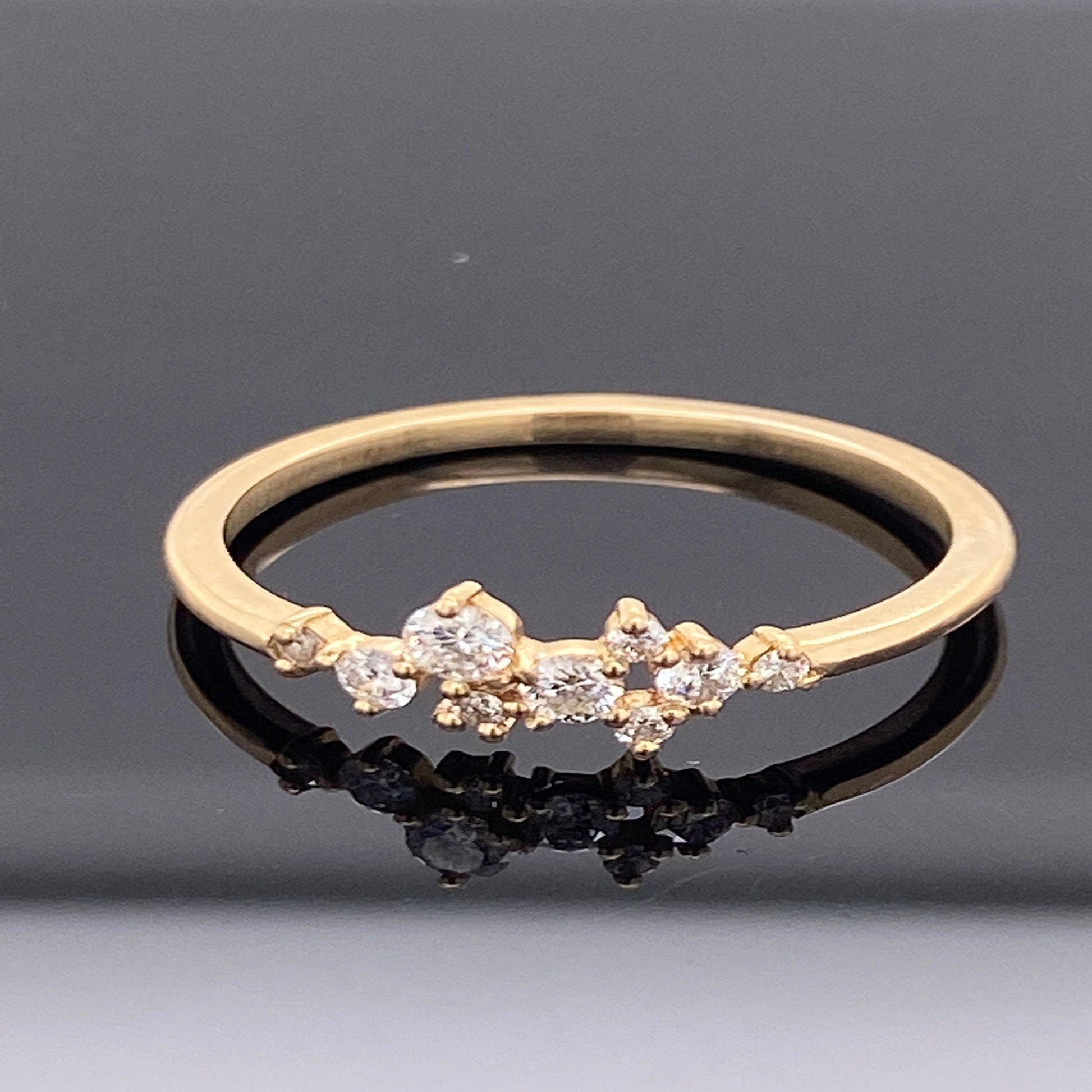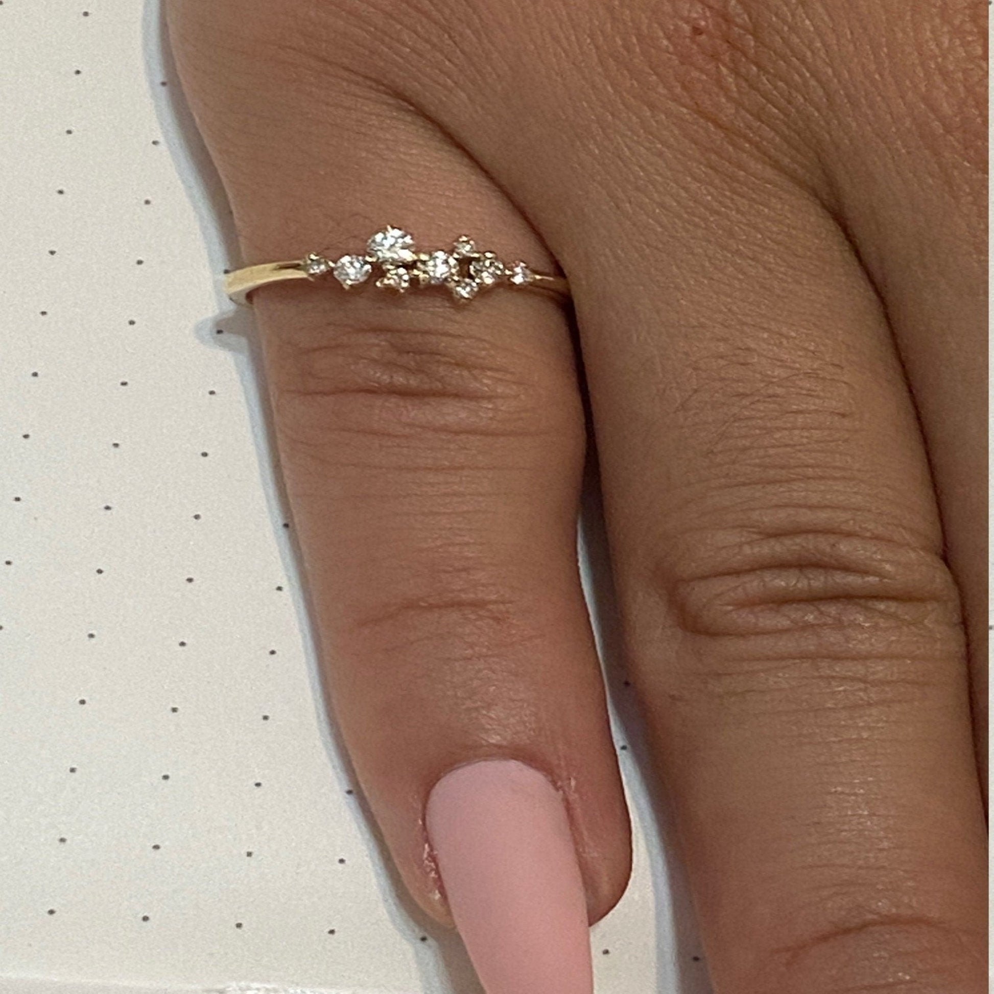 14K Solid Gold Cluster Ring / Diamond Cluster Ring / Stackable Diamond Ring / Dainty Diamond Ring / Wedding Ring / Fashion Diamond Ring