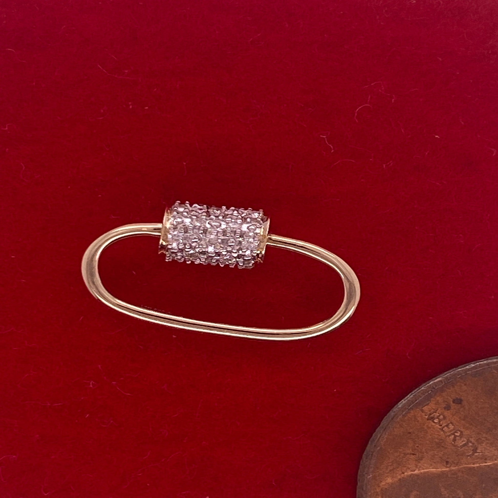 14K Solid Gold Diamond Carabiner Clasp With Screw Closure