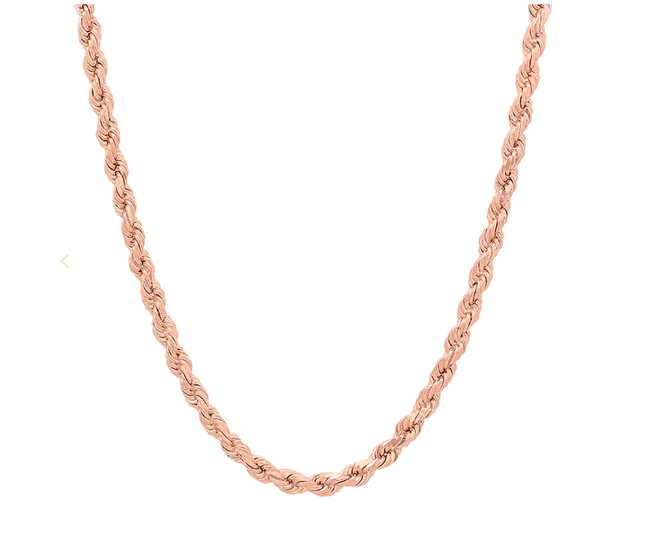 14k Solid Gold Diamond Cut Rope Chain 4.0mm