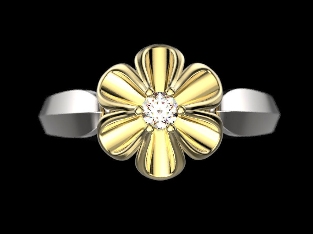 14K Solid Gold Diamond Flower Ring / Flower Diamond Ring for Her / Flower Design Diamond Ring / Gift for Her