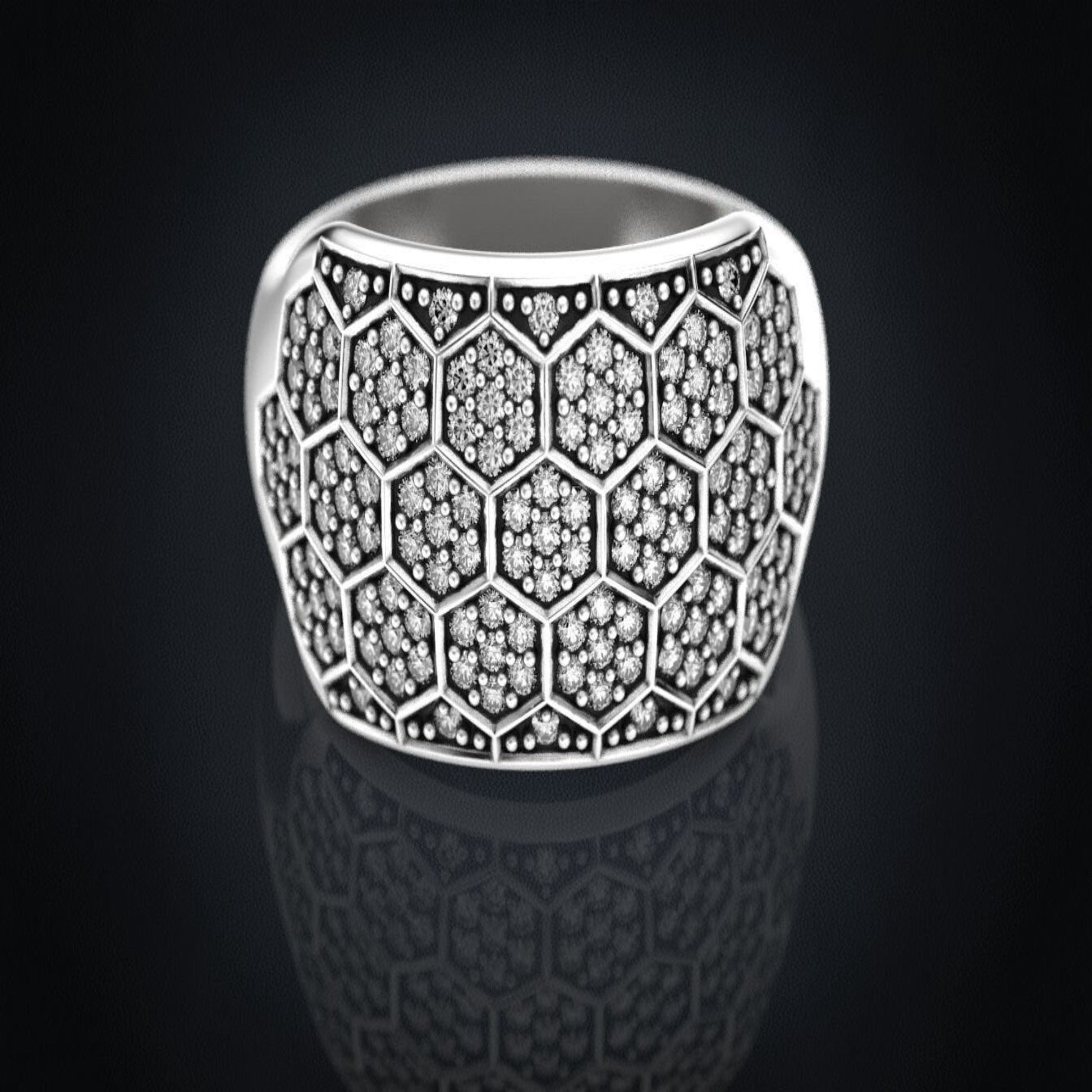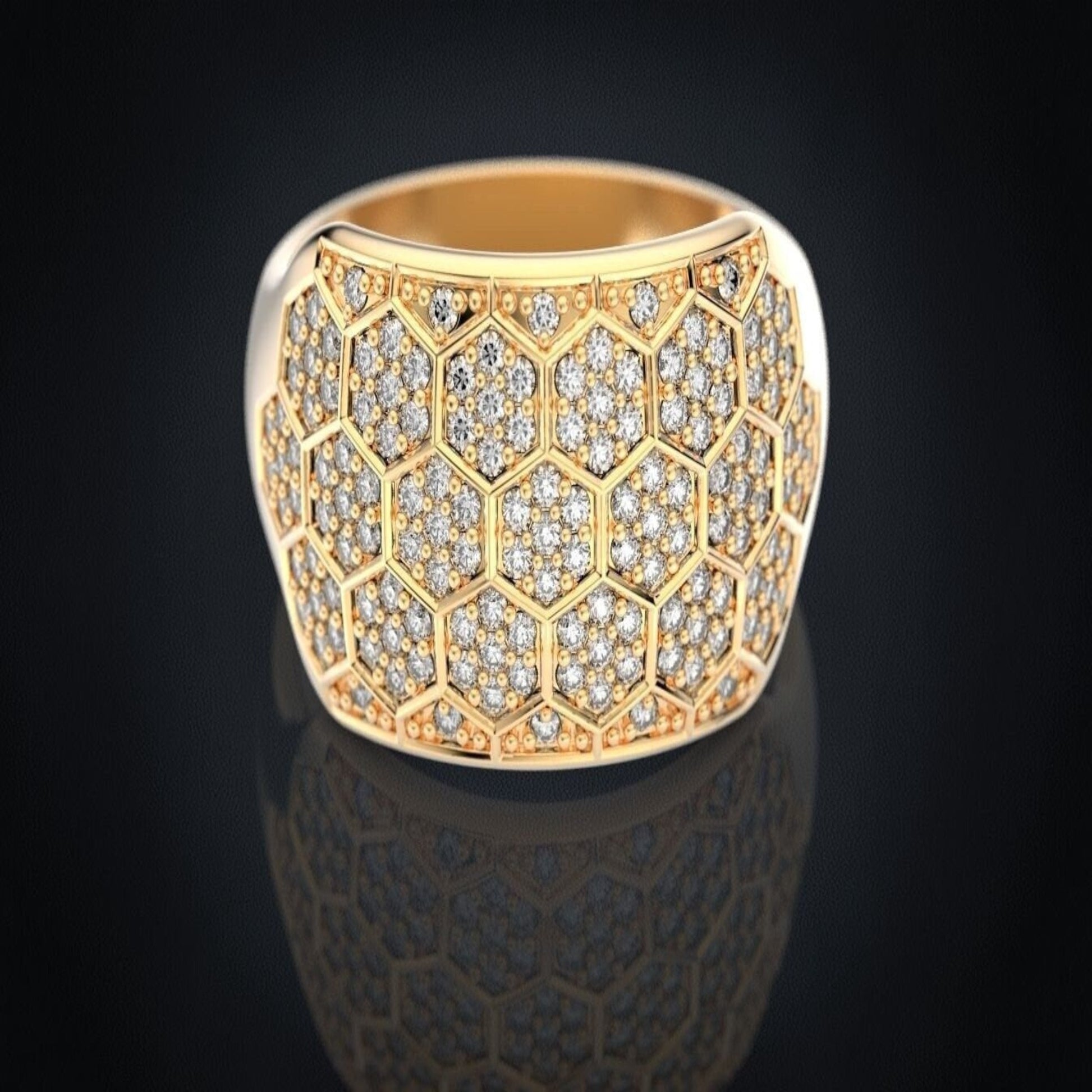 14K Solid Gold Diamond Honeycomb Wedding Band / Gold Honeycomb Ring / Gold Honeycomb Diamond Ring / Honeycomb Lady's Ring / Gift for Her