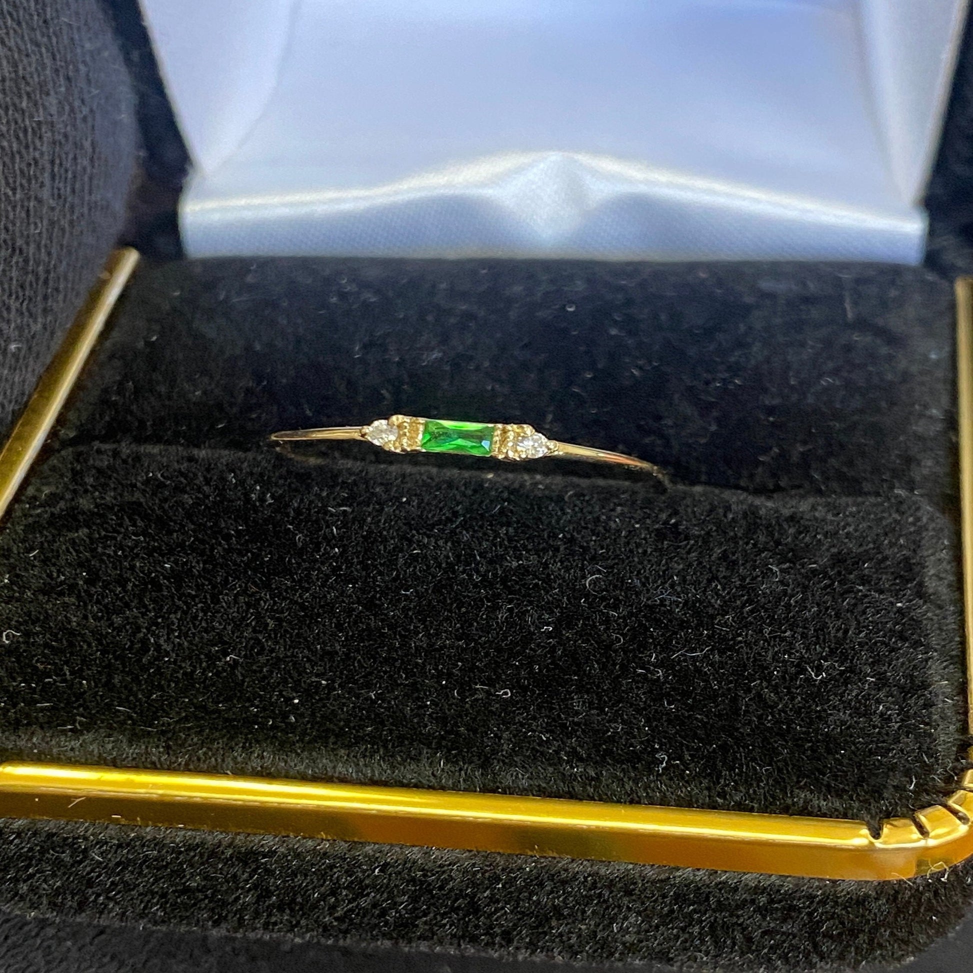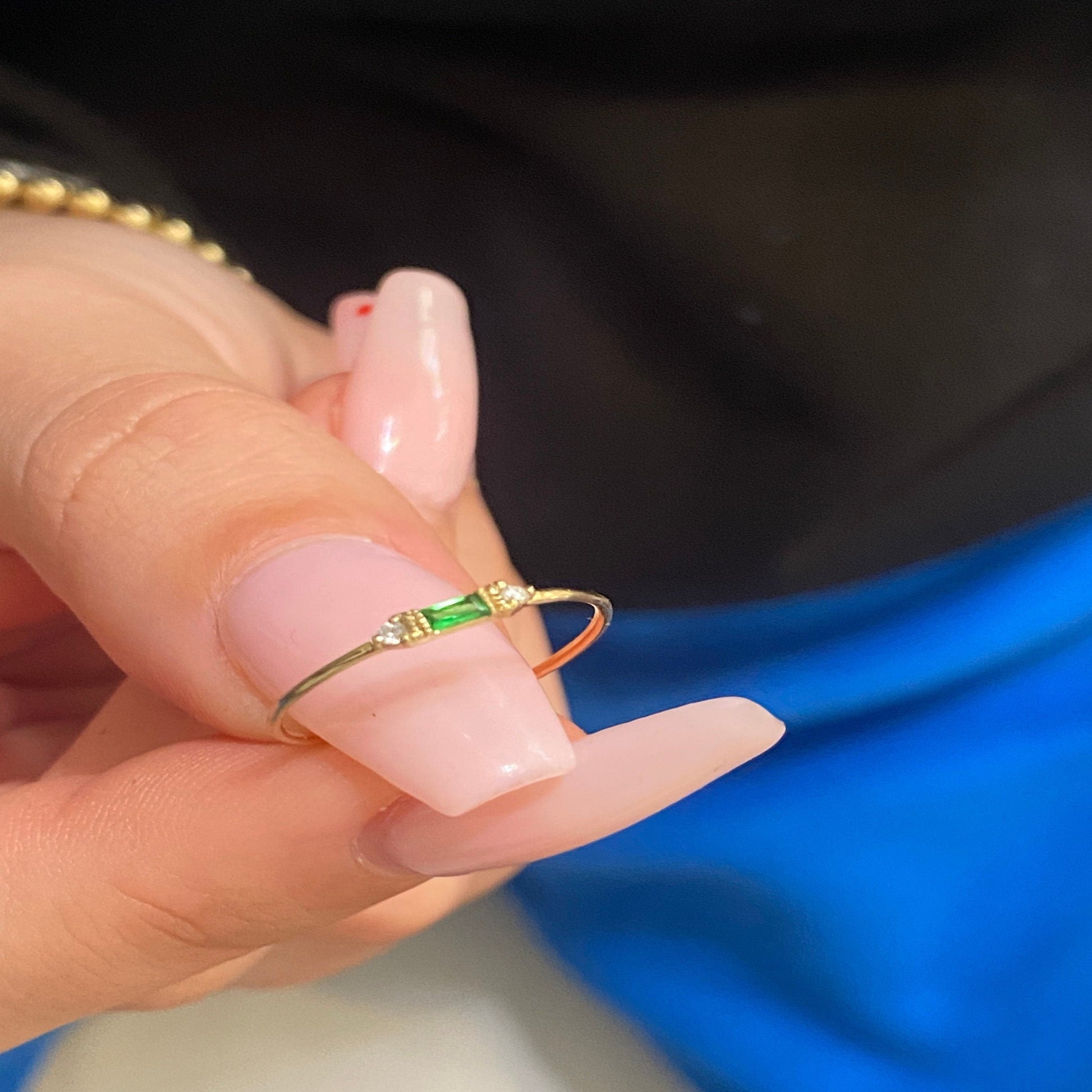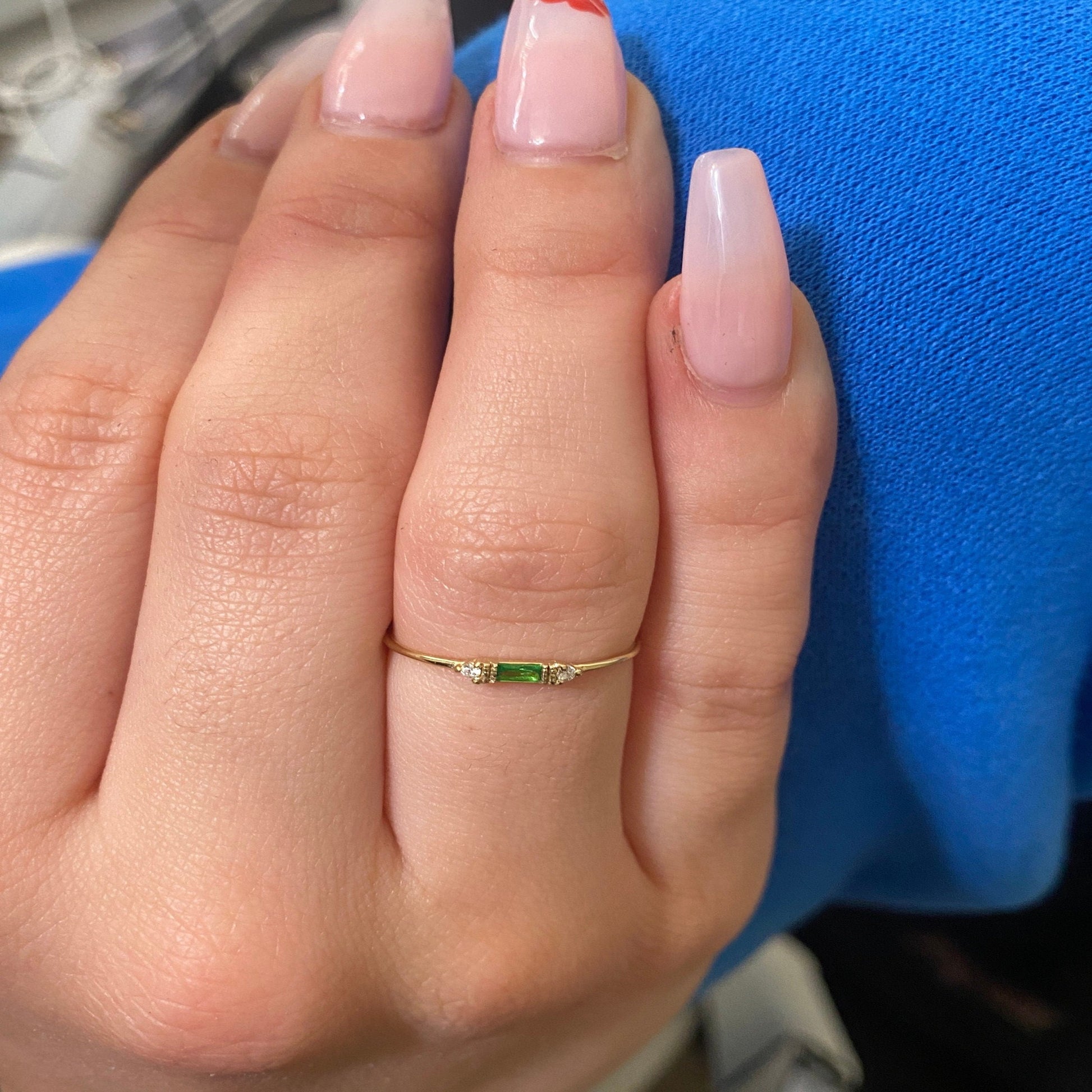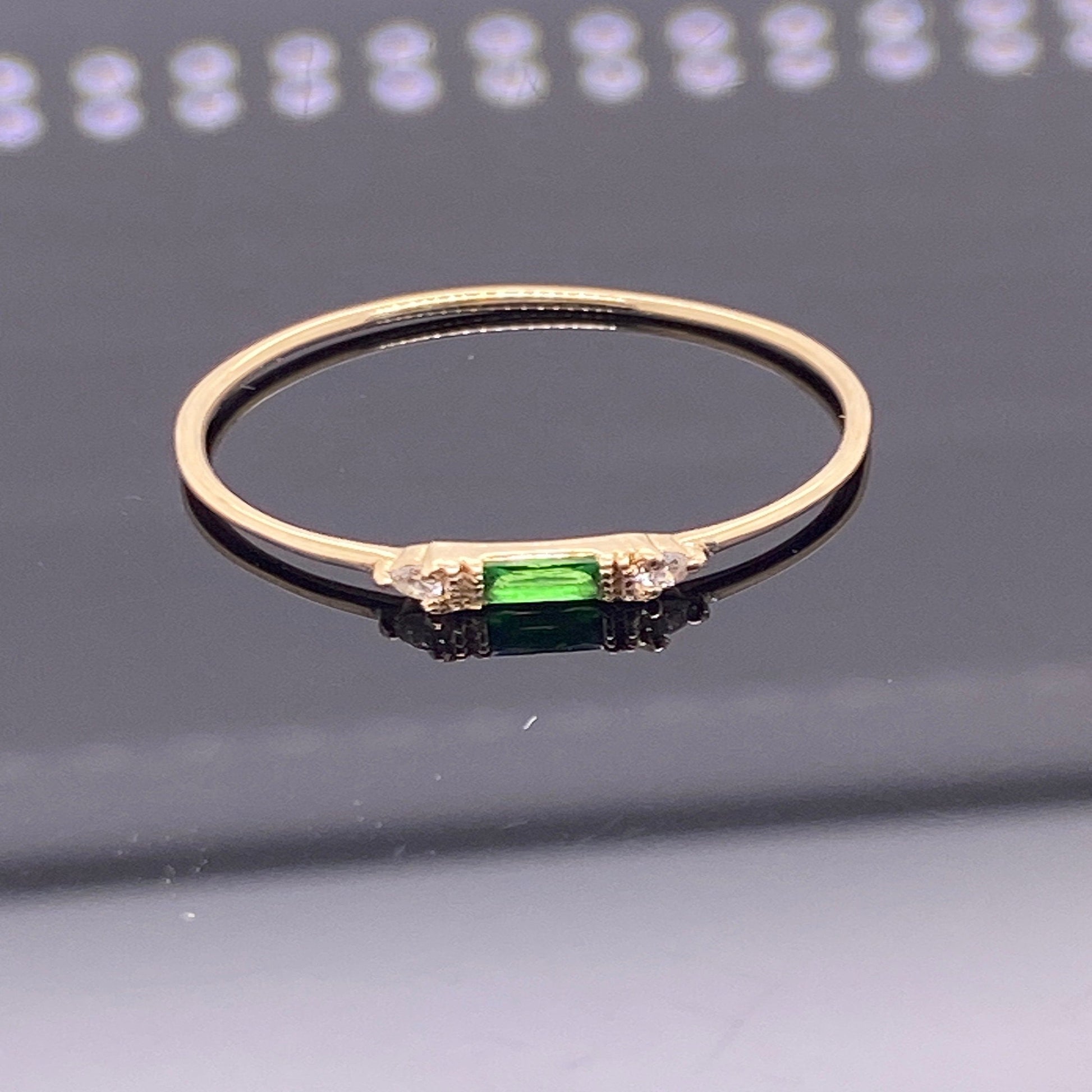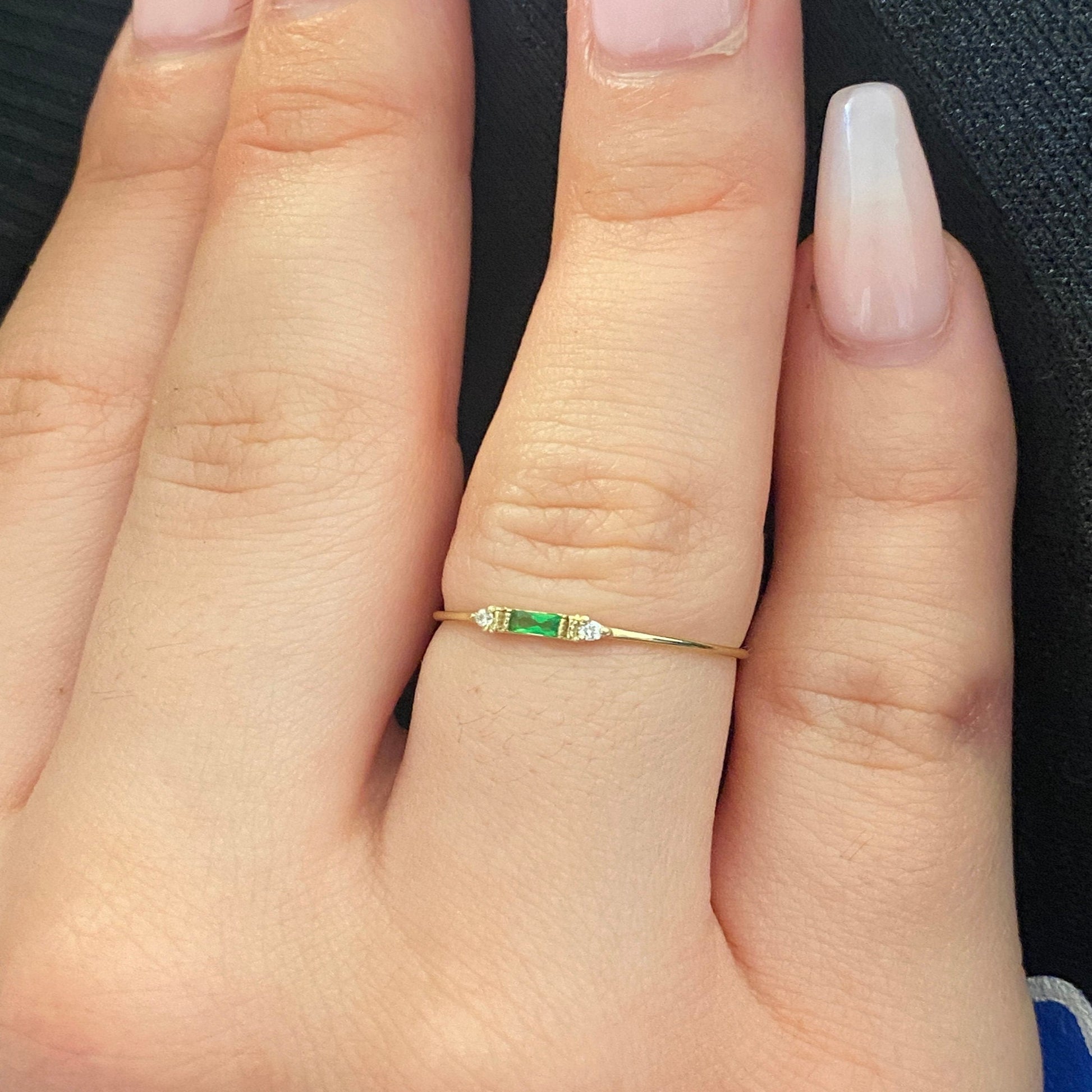 14k Solid Gold Emerald Ring / Personalized Gold Ring / Baguette Emerald Ring / 14K Gold Baguette Gemstone / Diamond Ring / Gift for Her