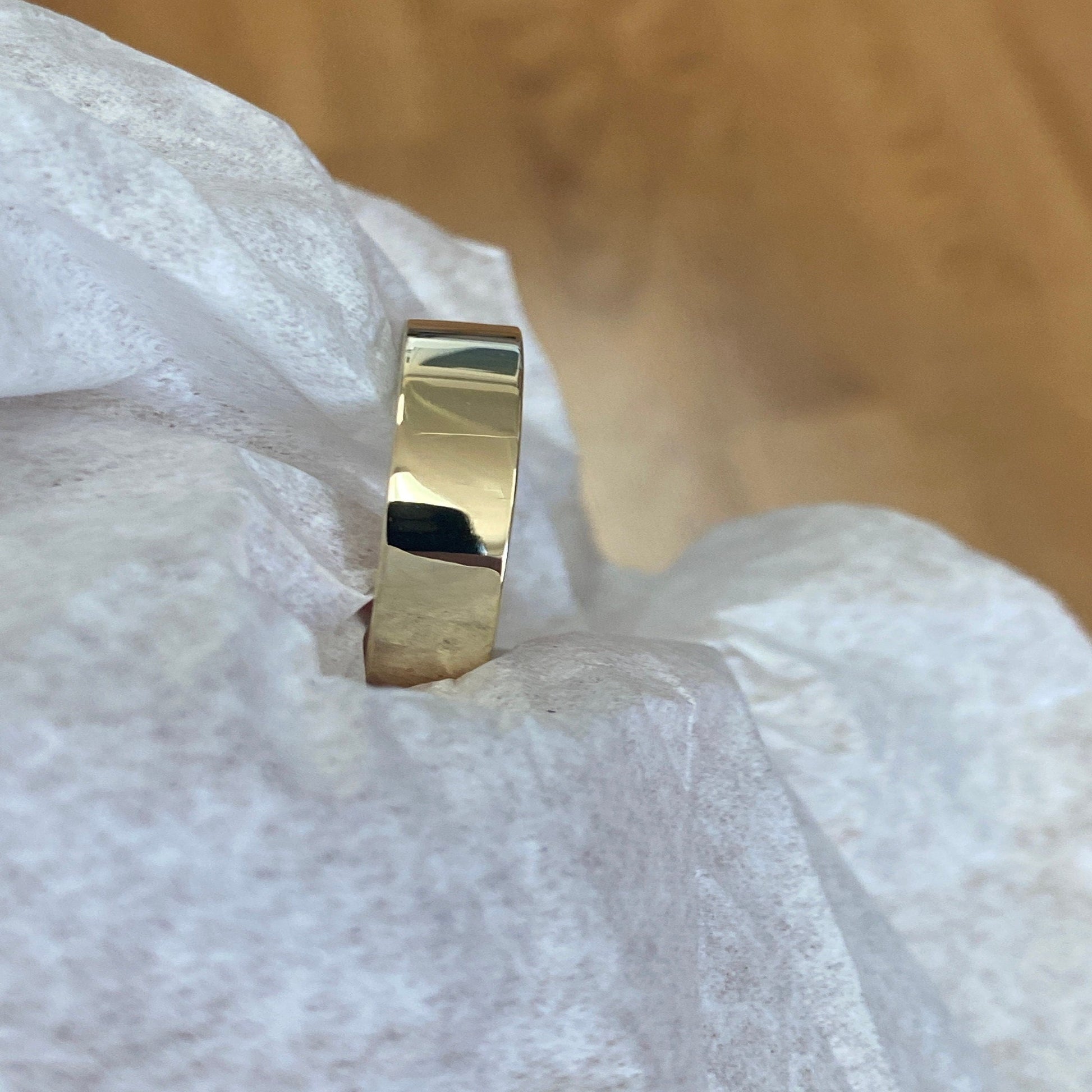 14K Solid Gold Flat Top 6mm Wedding Band with Natural Diamonds on the Sides