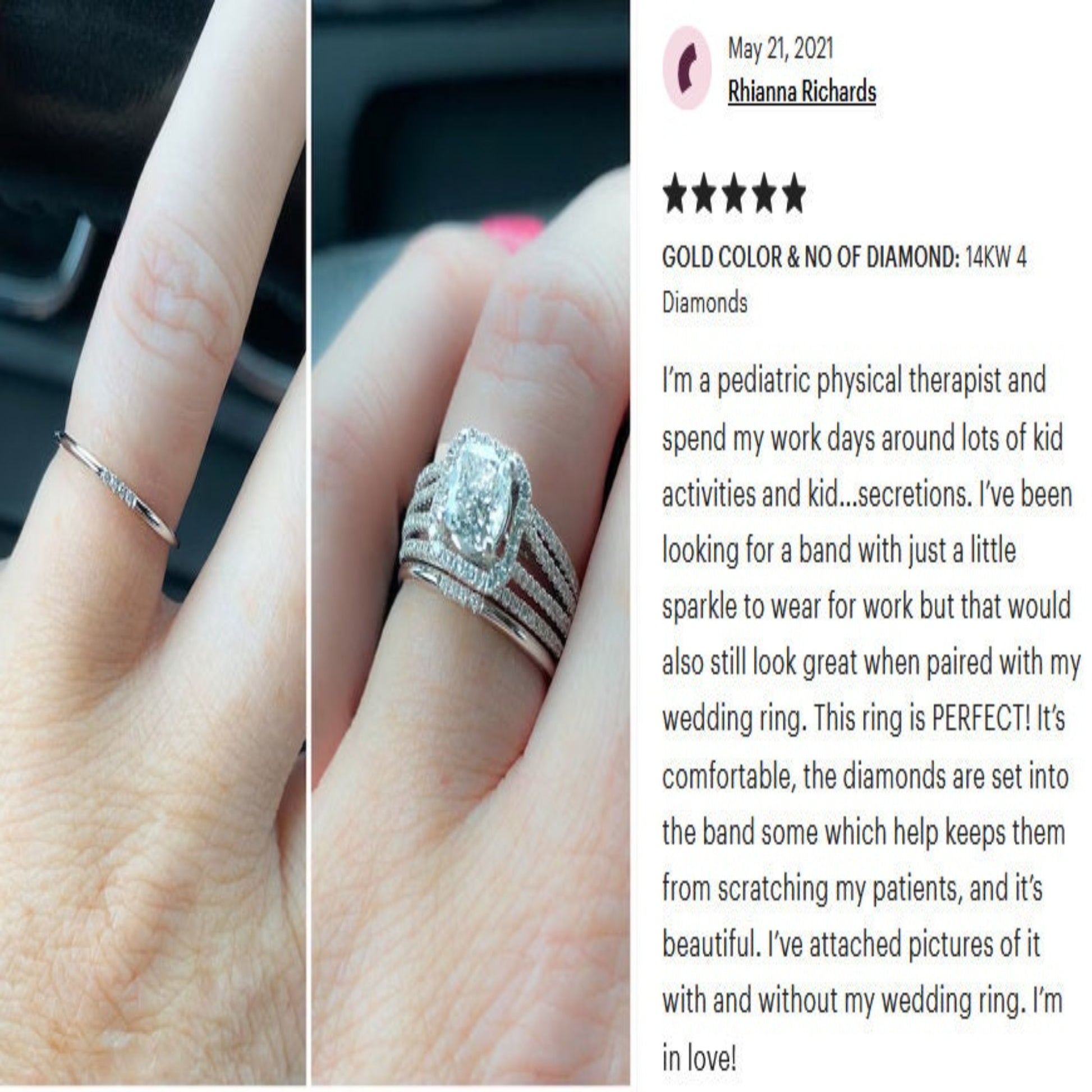 The Dainty Diamond Ring has 11 Conflict Free Diamonds & looks like Eternity Diamond Ring. Great Gift Idea as Diamond Engagement Ring.