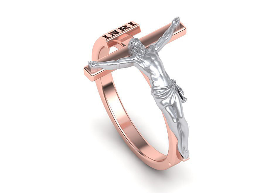 Metal: 14K Two Tone (Jesus & Cross White Gold on Yellow or Rose Gold Ring - Please choose your Color on Drop Down Menu)