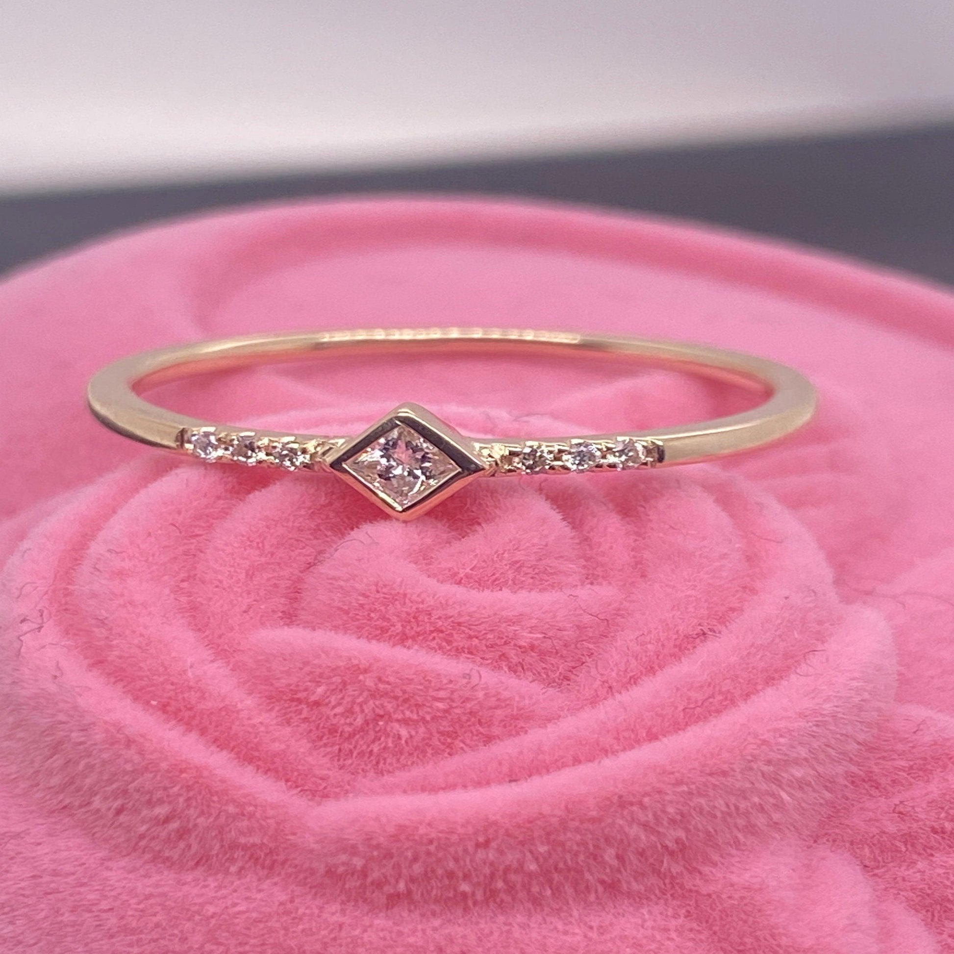 14K Solid Gold Princess Cut Diamond Engagement Ring / Simple Engagement Ring / Thin Dainty Conflict Free Diamond Ring / Stacking Gold Ring