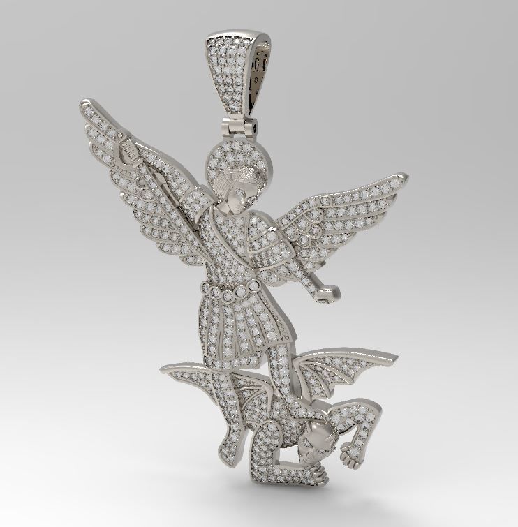 14K Solid Gold Saint Michael Diamond Pendant 2.65 Carat / St Michael Diamond Necklace / 14K Solid Gold St. Michael Necklace